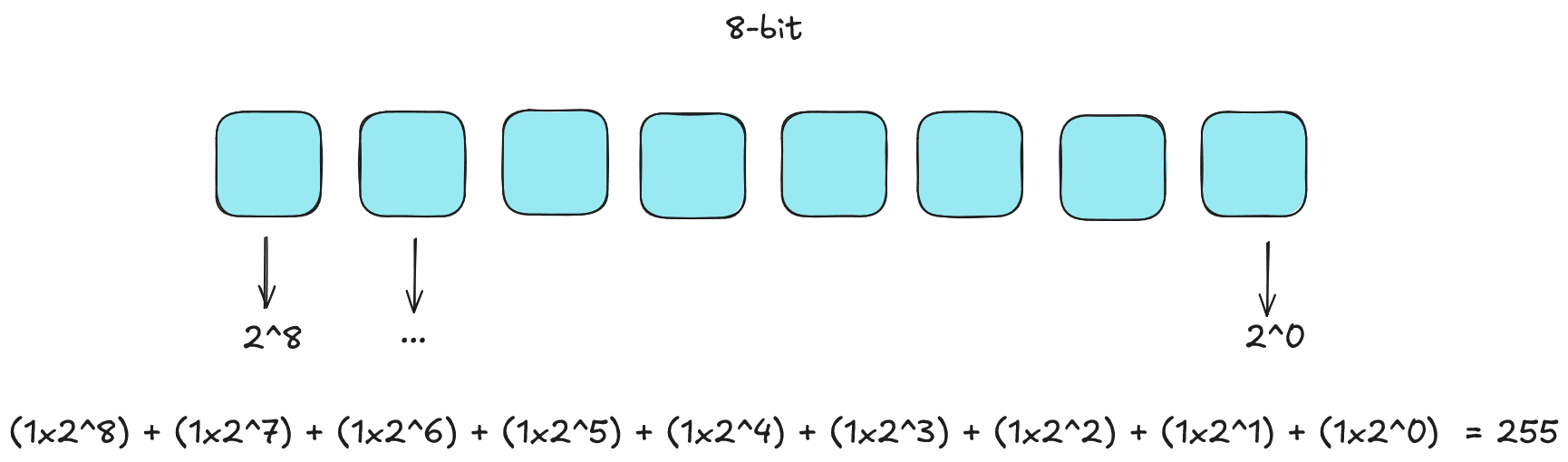 Torniamo alle basi dell’informatica e ripartiamo dal sistema binario, che utilizza solo due simboli, 0 e 1, per rappresentare i dati. Ogni cifra binaria (bit) può assumere uno di questi due valori. La quantità di informazioni che possiamo rappresentare con un certo numero di bit dipende dalla potenza di 2. Ad esempio, con 1 bit possiamo rappresentare 2 valori (0 e 1), con 2 bit possiamo rappresentare 4 valori (00, 01, 10, 11), con 3 bit possiamo rappresentare 8 valori (000, 001, 010, 011, 100, 101, 110, 111) e così via. Nell’esempio seguente, mostriamo come convertire un numero binario in decimale facendo la somma delle potenze di 2 corrispondenti ai bit attivi (e quindi pari a 1) e qual è l’intervallo di numeri rappresentabili con un certo numero di bit.