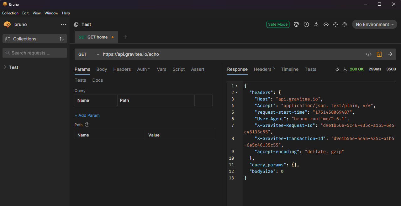 Infine, Bruno offre un’interfaccia utente semplice e intuitiva, che consente di navigare facilmente tra le collezioni e le richieste, in parte simile a quelladi Postman, ma tenendo conto che la sua interfaccia è progettata per essere leggera e veloce, con un focus sull’usabilità e sulla produttività di chi sviluppa.