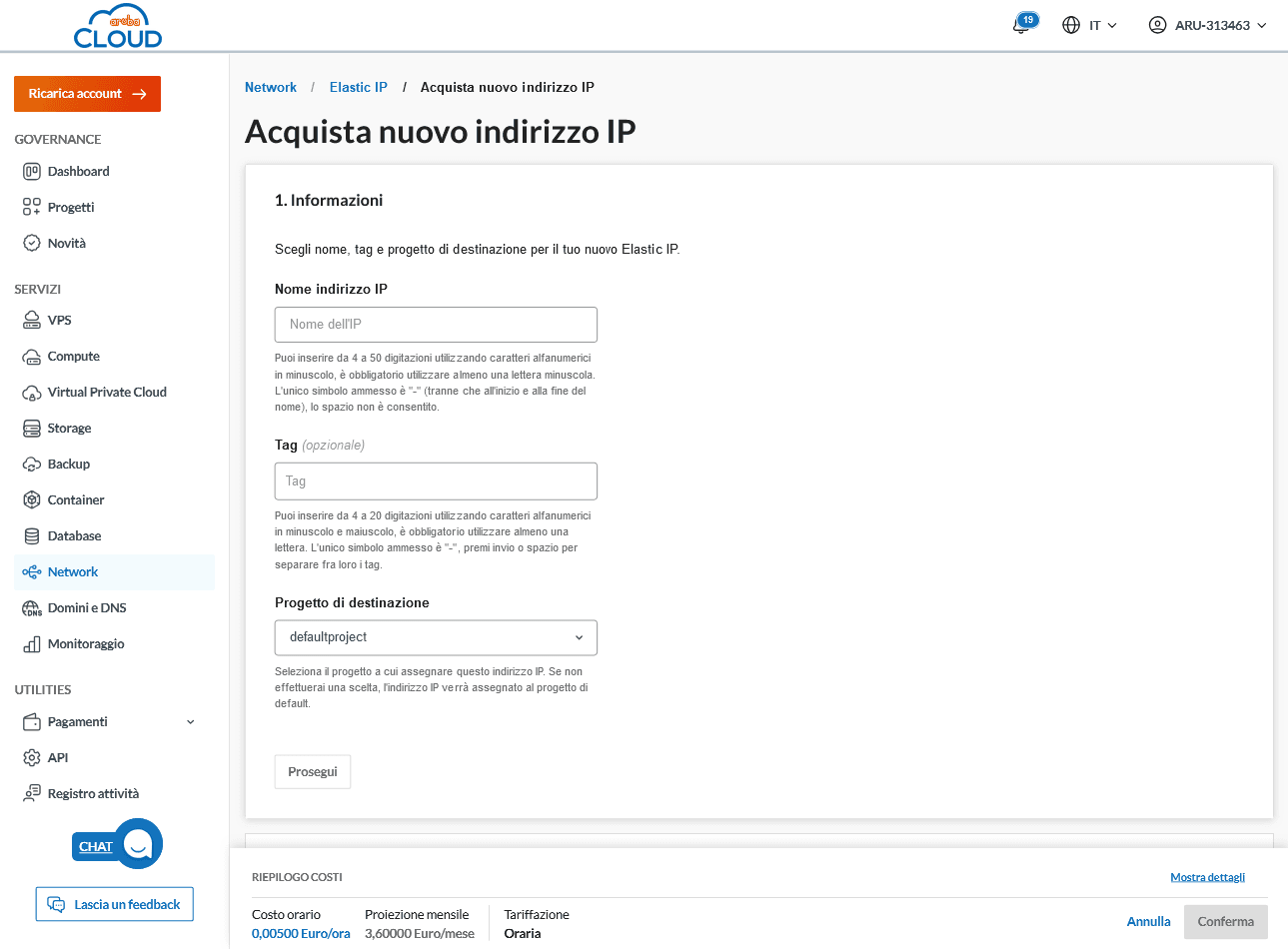 L’indirizzo IP verrà creato in pochissimo tempo e sarà disponibile nella pagina dedicata alla configurazione di rete: